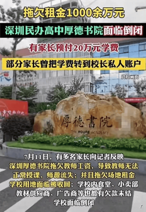 香港朗思国际的家长交了20万港币建校债券,最后只拿回一半;深圳厚德书院的家长平均损失4到8万元学费。
