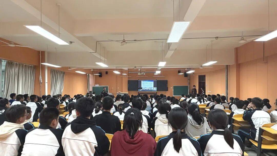 本次报告会依托校园智慧平台,由学校指挥中心统筹,高一、 高二各班级同步开设线上分会场。屏幕上,各班级学生坐姿端正、专注聆听,与主会场实时互动,确保教育覆盖无死角。这种“云端+课堂”的模式,既突破了空间限制,又保障了教育活动的高效开展。