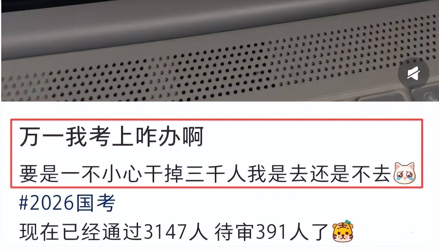 正常考生看见这么多人,要么换岗,要么咬咬牙开始刷题。可女生材料还没递上去呢,就在网上发起了 “灵魂拷问”:“要是我不小心干掉这 3000 人考上了,到底去不去上班?”