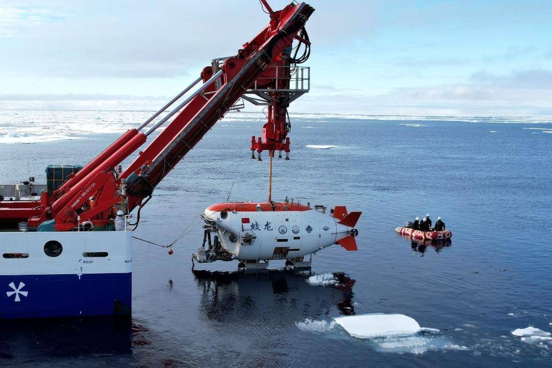 搭载着“奋斗者”号载人深潜科考队的“探索三号”于今年7月22日从三亚出发,会同“蛟龙”号载人深潜团队赴北冰洋海域执行深潜任务。其间,科考队在北冰洋作业56天,进行了一系列科学考察和试验。在海冰覆盖率大于80%的北冰洋中央海盆,科考队进行了国际上首次加克洋中脊的载人深潜科考,最大下潜深度达5277米。