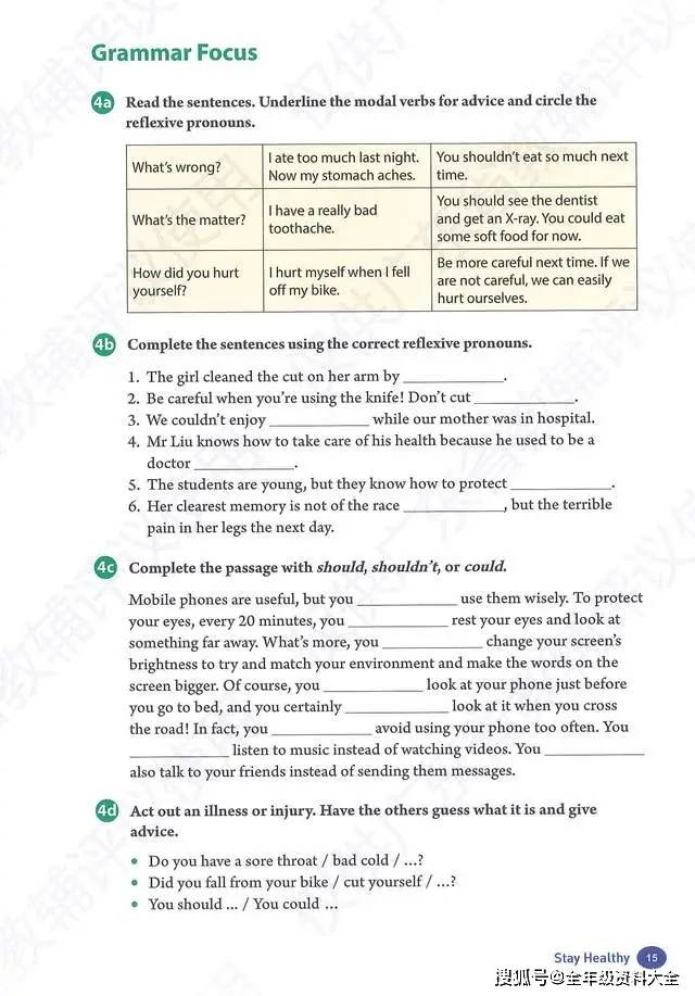 内容架构科学合理,形成 “输入 — 内化 — 输出” 的完整学习闭环!每个单元分为 Section A(基础输入与对话练习)、Section B(拓展阅读与写作)、SelfCheck(语法与词汇巩固)三大板块,配套听力、口语、阅读、写作专项训练,层层递进夯实知识。语法聚焦中考核心考点,重点攻克过去进行时、情态动词(can/could/may/might)、被动语态、宾语从句、比较级与最高级等难点,通过情境化例句和配套练习,帮孩子构建清晰的语法体系,为应试筑牢根基。