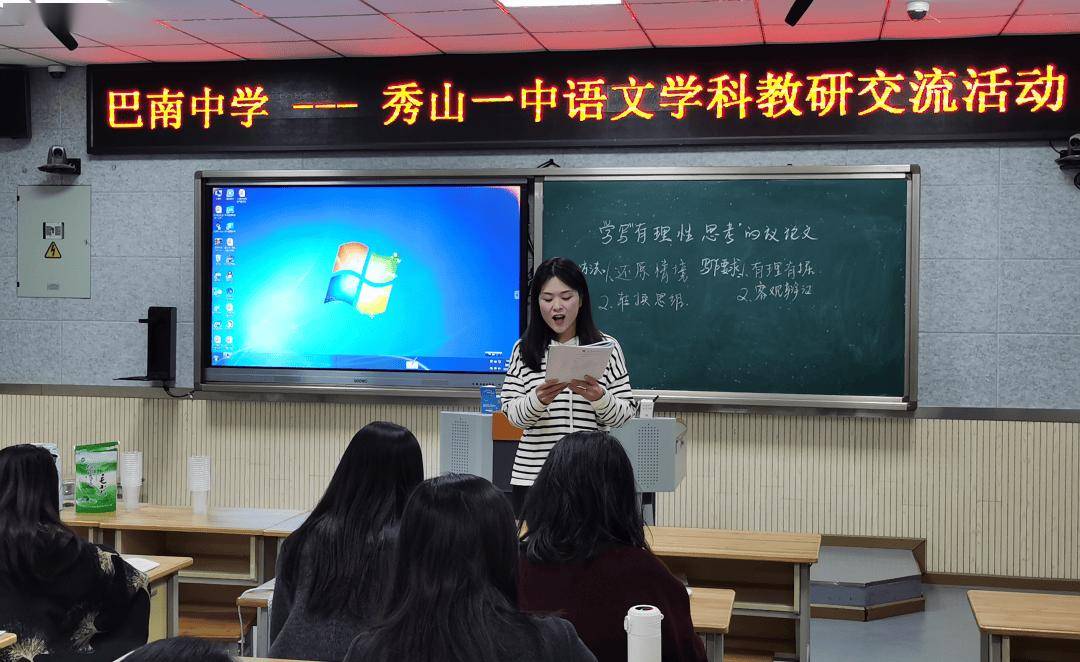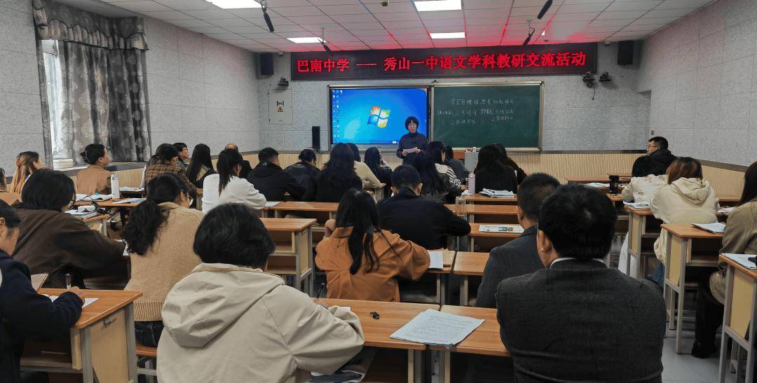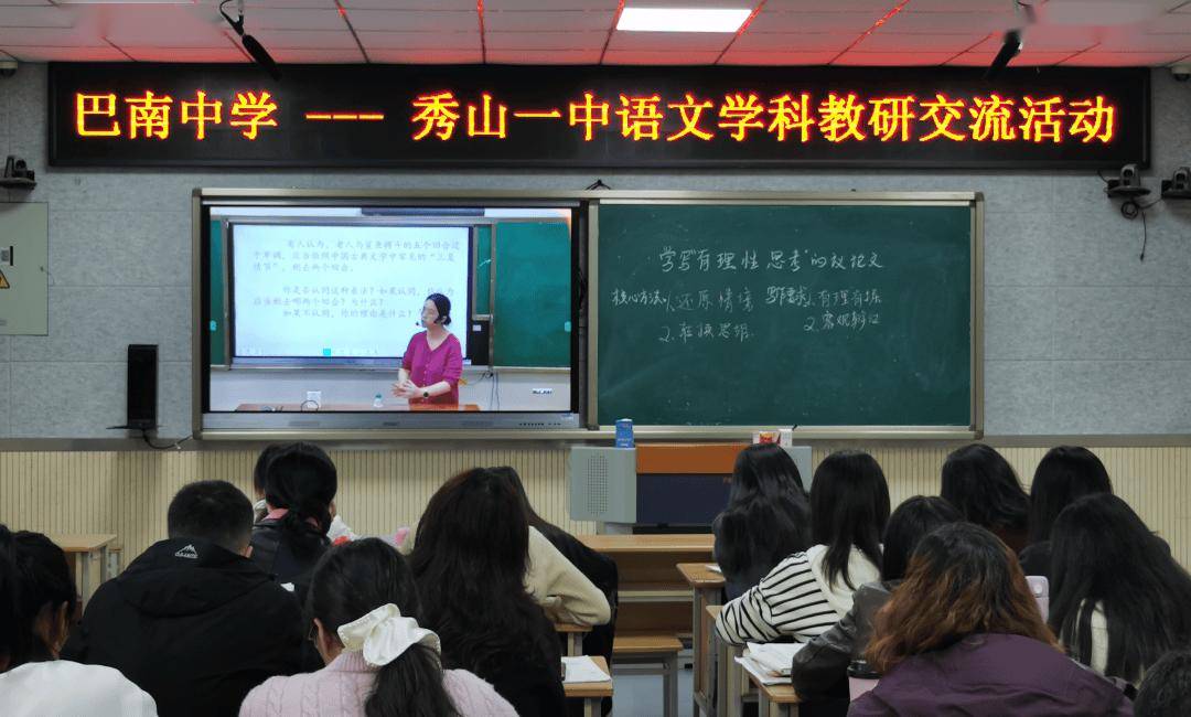接着,秀山一中高三备课组组长吴露老师汇报了一轮复习规划,强调依标靠本、专题突破、定时训练、时事引入和作文能力培养;高一年级组长唐水平老师分享了双线挖掘教材、群文阅读、分层作业等创新做法;语文中心教研组组长余兰老师介绍了教研组的特色活动,如楹联擂台、名师工作室实践、古诗词吟诵等,以提升学生语文素养和文化自信。