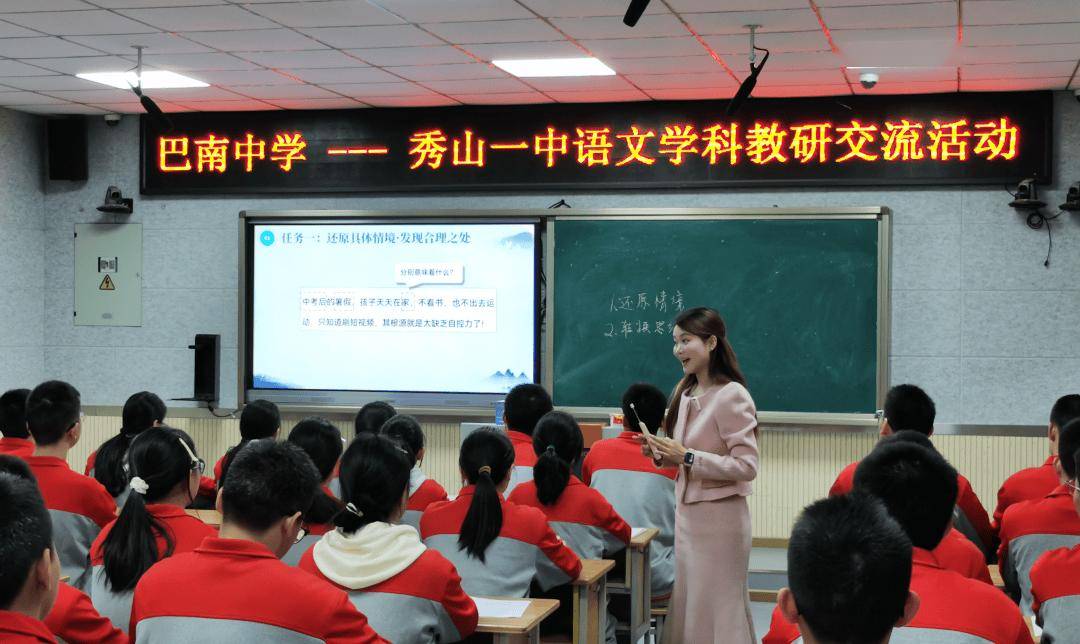 2025年10月24日上午,重庆市巴南中学校语文教研组代表团莅临秀山一中开展了语文学科教研交流活动。本次活动由秀山一中语文中心教研组组长余兰老师主持,旨在通过深入的对话与分享,共同探索语文教研的新路径,促进两校教育的深度融合与共同提升。