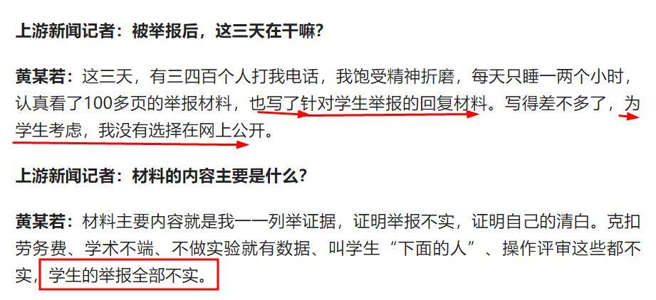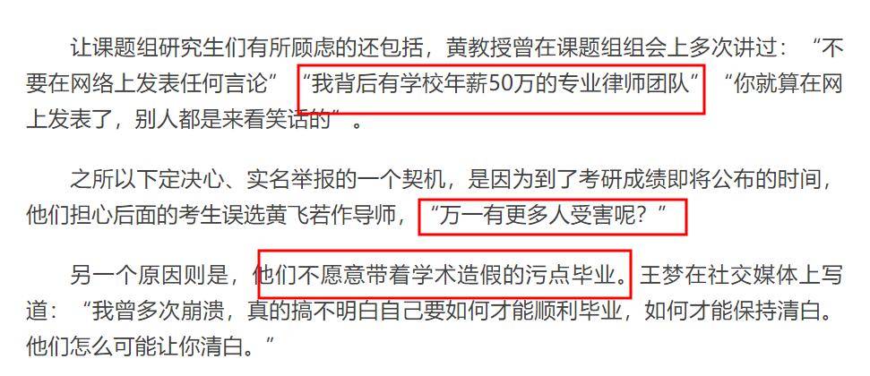 但从现实来看,所谓的律师团队是黄教授用来吓唬学生的话,因为出事之后,没有律师为他发声,反而是他自己不得不站出来说话。