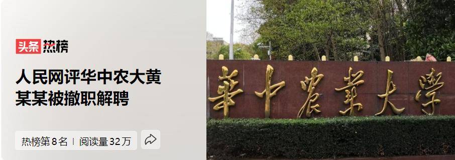 时隔半个多月,华中农业大学11名学生联名举报他们的导师黄教授学术不端的事情终于迎来了大结局。