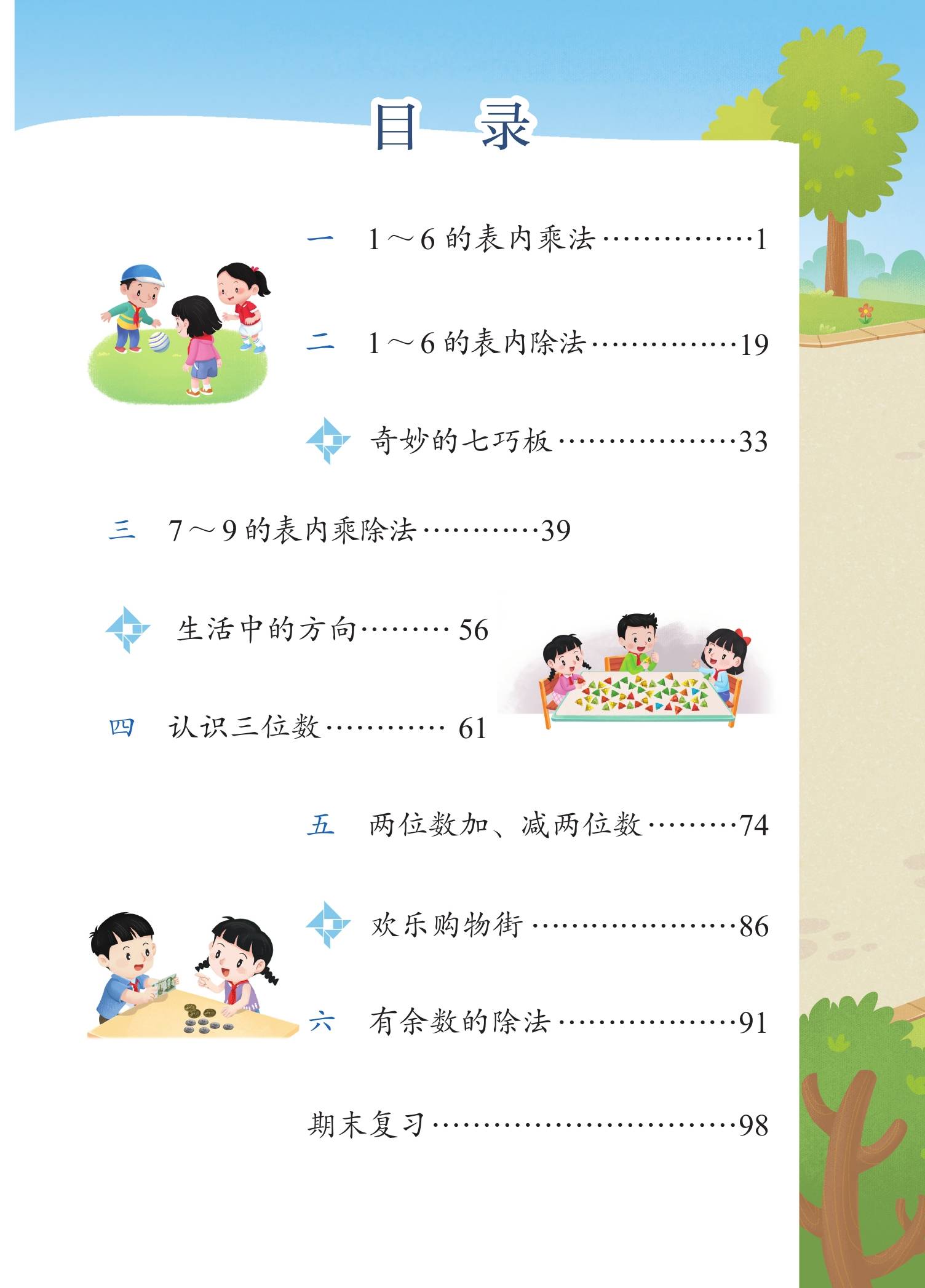 一:2024版苏教版小学数学二年级上册电子课本教材目录: