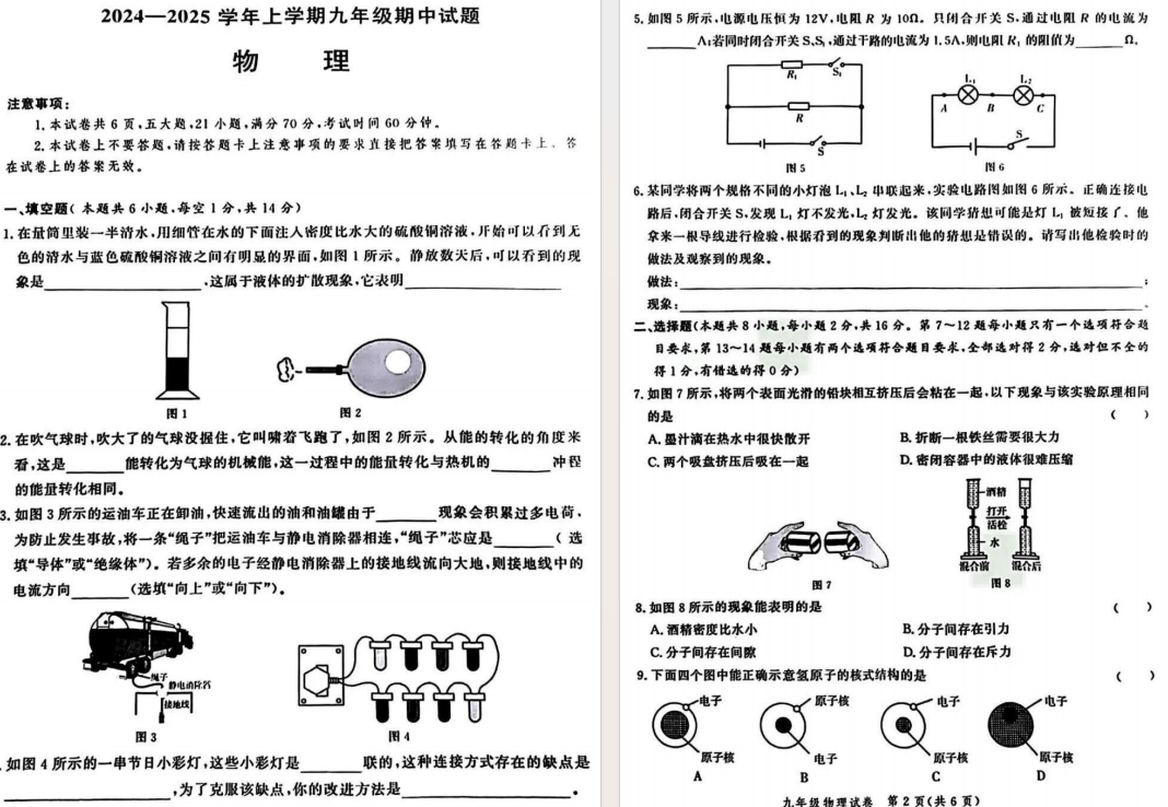 24-25郑州九校联考期中物理试卷及答案