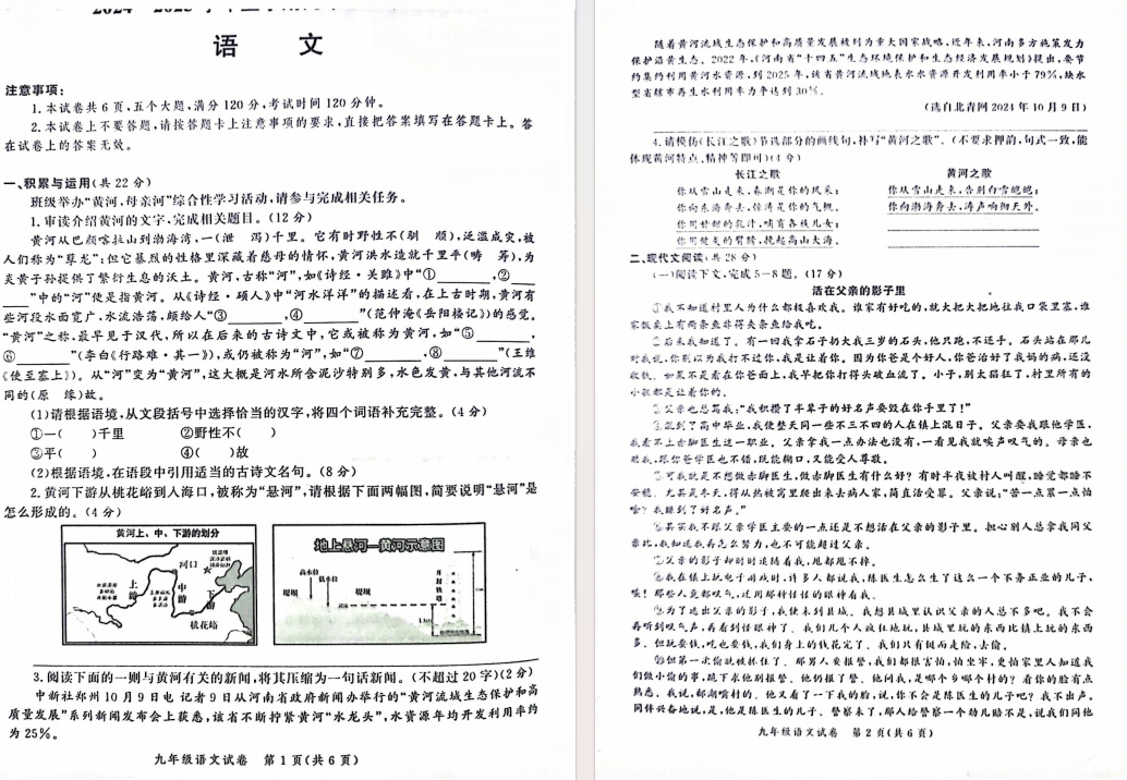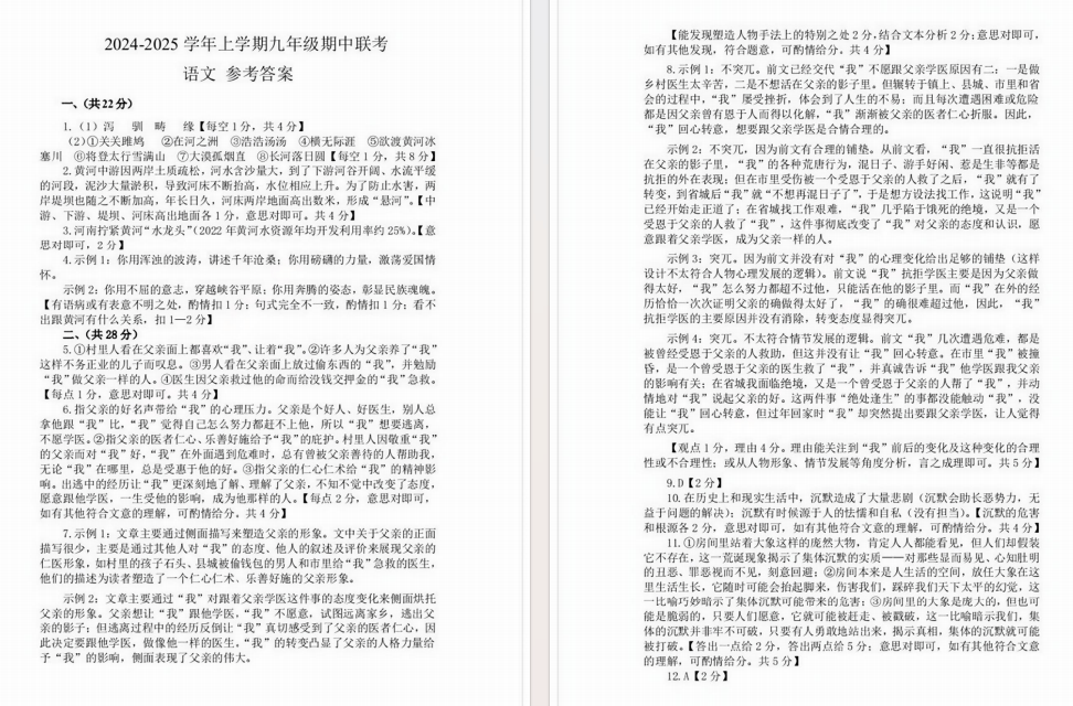 24-25郑州九校联考期中语文试卷及答案