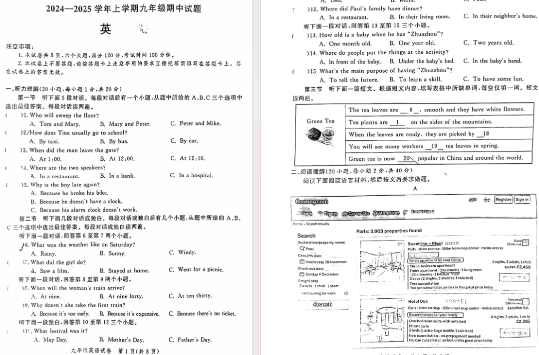 24-25郑州九校联考期中英语试卷及答案