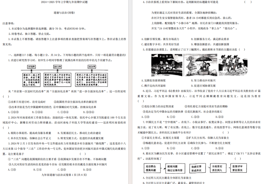 24-25郑州九校联考期中政治试卷