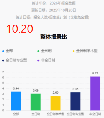 现对外公布我校截至10月24日,2026年研究生统考报录比(报名人数/计划人数)小于3的专业。请注意,此次公布为报名期间最后一次统考报名情况公布。