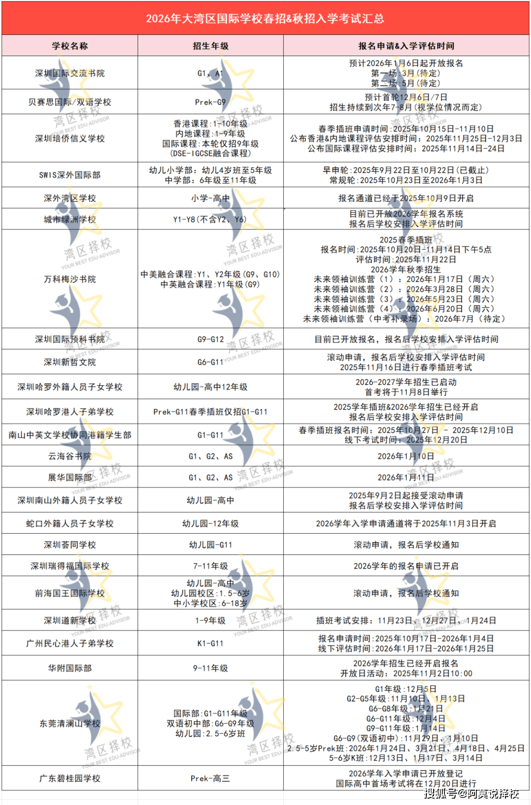 为了帮助家长们高效规划,阿Mo特地整理了2026年大湾区国际学校春招&秋招入学考试时间,建议有需要的家长收藏起来,或记下关键时间点,以免错过重要节点!