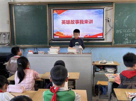 三、四年级开展的“英雄故事我来讲”演讲活动将本次主题教育推向了高潮。各班学生踊跃参与,他们利用课余时间查阅资料、精心准备,在班级初赛中深情讲述了黄继光、邱少云、杨根思等战斗英雄的感人事迹。小讲解员们声音洪亮,情感真挚,时而慷慨激昂,时而低沉婉转,将英雄们不畏牺牲、保家卫国的光辉形象栩栩如生地展现在师生面前。经过激烈角逐,每班评选出一名“优秀红色故事讲解员”。这不仅锻炼了学生的语言表达能力,更让革命英雄主义精神在讲述与聆听中深深烙印在孩子们的心中。