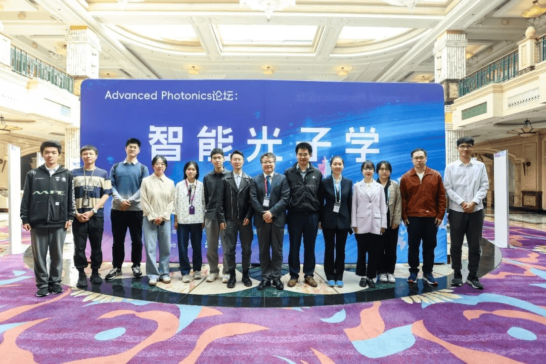 清华大学精密仪器系教授曹良才(右七)课题组师生参加智能光子学研讨会。