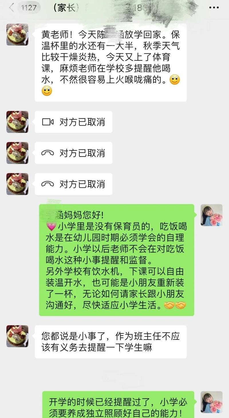 有的家长对于孩子在学校的情况很惦记,一天给老师发好多条信息,问孩子吃饭了吗?喝水了吗?甚至去没去卫生间,都要问一下。如果老师回复消息不及时,就觉得不负责任。