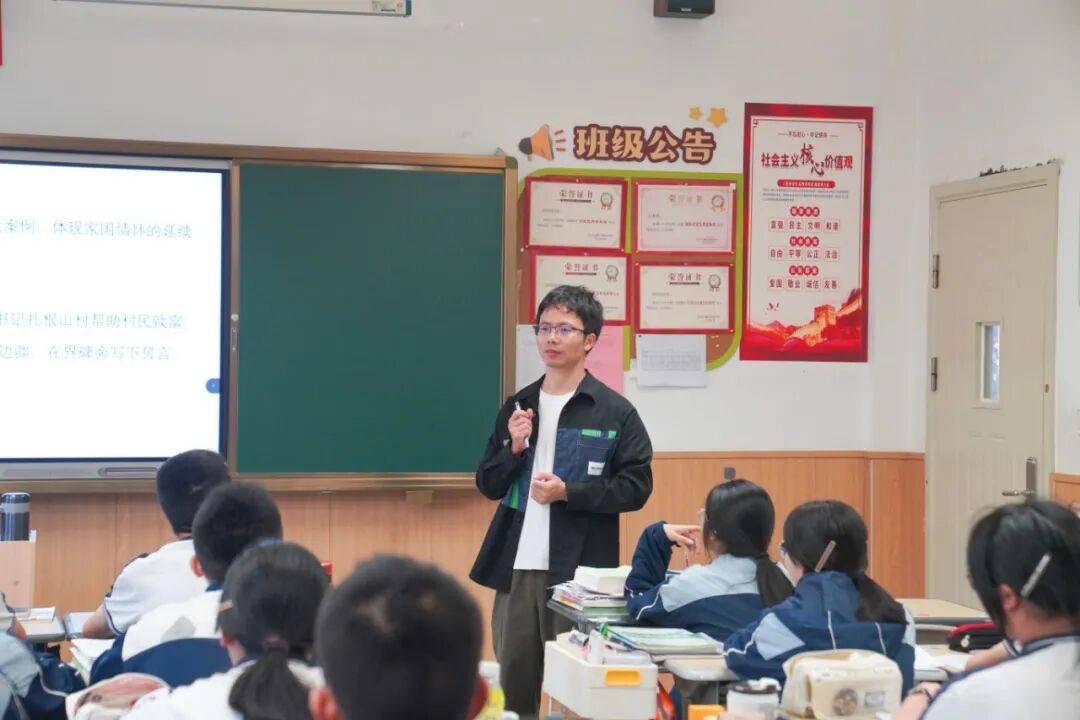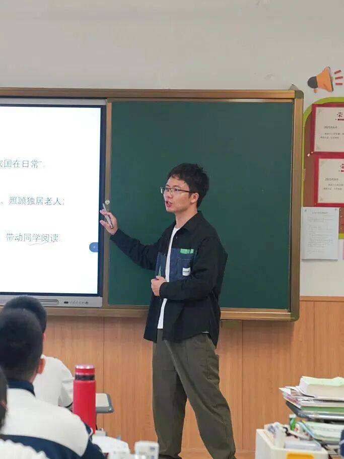 他是教学与管理的“双料标杆”:作为语文老师,他以文字为舟载学生漫游文学星河,课上盘活文言韵律、散文温度,课后批注精准点拨,让学生于笔墨间悟人文、写深情;作为段长,他以责任为尺托举年级成长,统筹教学、调控状态、调和矛盾,以严谨与耐心成团队“主心骨”——于讲台,他是语文课堂的“点灯人”;于年级,他是团队前行的“压舱石”。