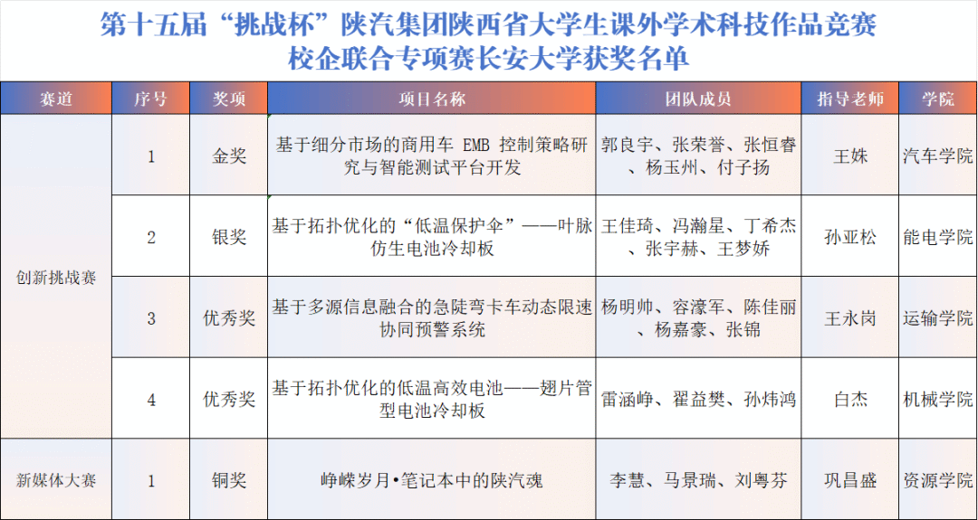 长安大学在第十五届“挑战杯”陕汽集团陕西省大学生课外学术科技作品竞赛校企联合专项赛中的表现,正是其产教融合实力的生动证明。