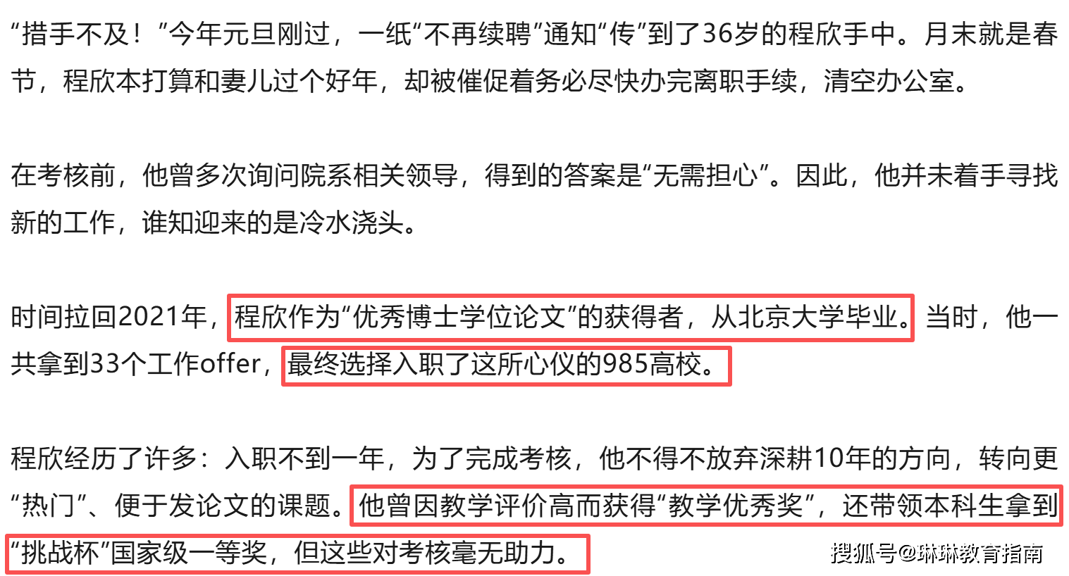 文科专业的现状不止影响学生,也让相关专业的教育工作者陷入了僵局,学校想在文科专业上减员,即便北大博士的表现足够优秀,却还是选择用“非升即走”的一纸合约逼走了他。
