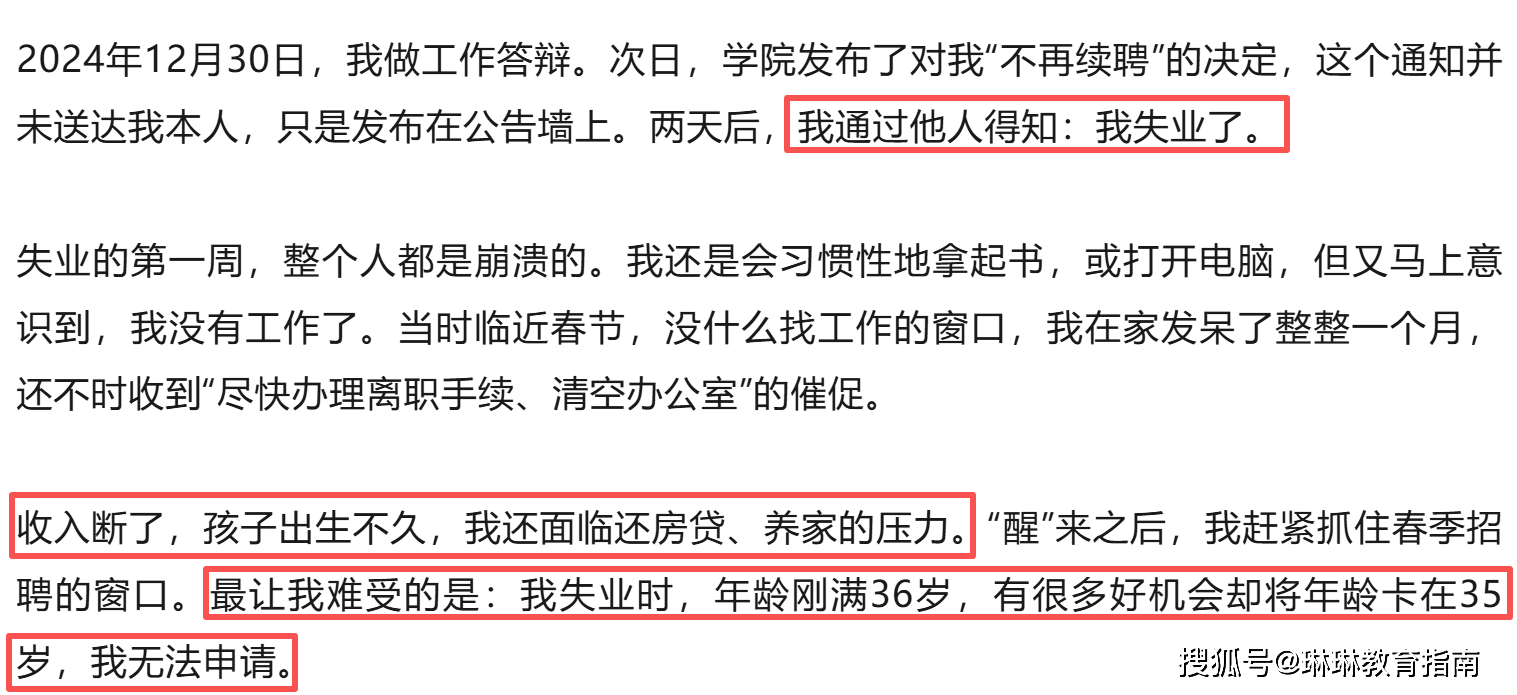 这不仅意味着他本该到手的编制和副教授职称全都泡汤了,还让年仅36岁的他背上了一百多万的房贷,而且更绝望的是,36岁失业的他,也失去了再就业的最佳机会。