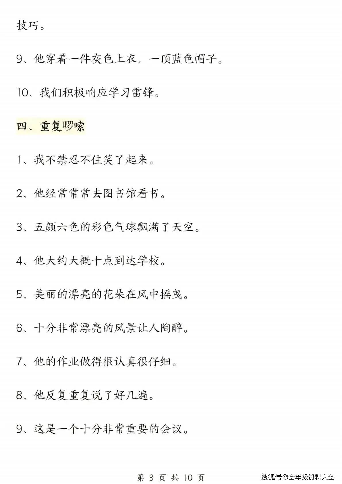 三年级是语文学习 “从句子积累向篇章写作过渡” 的关键期,规范的句子表达是写好文章的基础。这份修改病句专项练习,既能帮学生扎实掌握病句修改的核心技能,又能培养严谨的语言逻辑思维,让学生在阅读与写作中都能 “精准表达、规范用词”。不管是日常课后巩固语法知识、攻克句子薄弱点,还是为写作积累规范表达经验,这份资料都能完美适配,让学生在系统练习中稳步提升语言表达准确性,为语文学习筑牢句子根基!