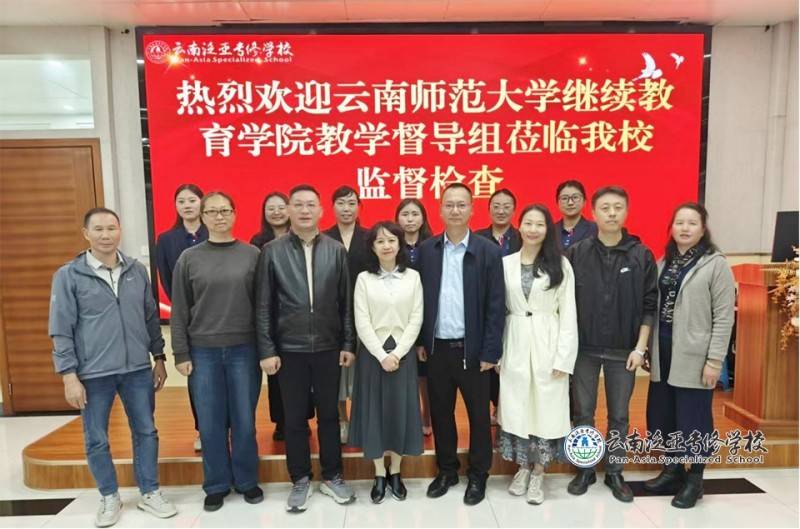 2025年10月21日,云南师范大学继续教育学院党委书记邹飒、院长张国华、副院长李秋菊、招生考试办公室主任舒宇、招生考试办公室狄丹、李伟科、龙梅一行7人组成专项督导组,赴云南泛亚专修学校开展教学教务全流程监督检查及指导工作。