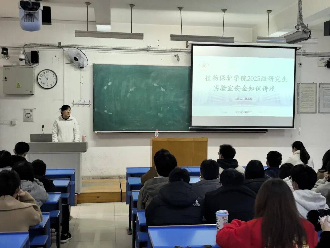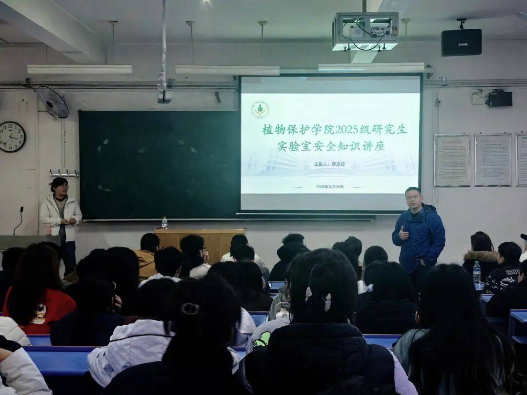 为提高师生实验室安全意识,规范实验室安全行为,10月29日,植物保护学院在崇德楼2204教室举办实验室安全知识讲座,国有资产管理处韩志校担任主讲嘉宾,学院副院长石承民、创新团队教师代表、辅导员及全体2025级研究生共130人参加了此次讲座。