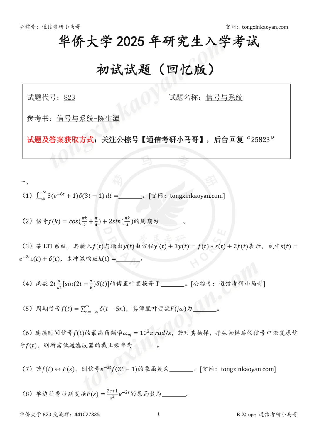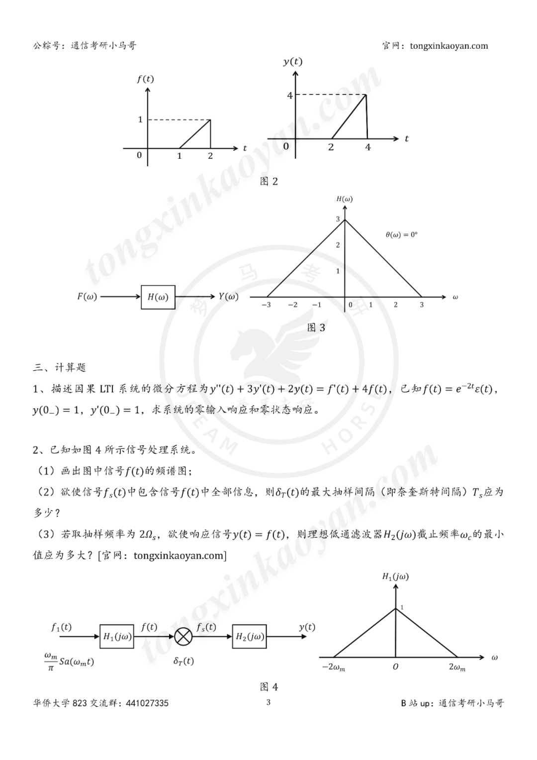今天分享的是华侨大学823信号与系统试题及其解析。