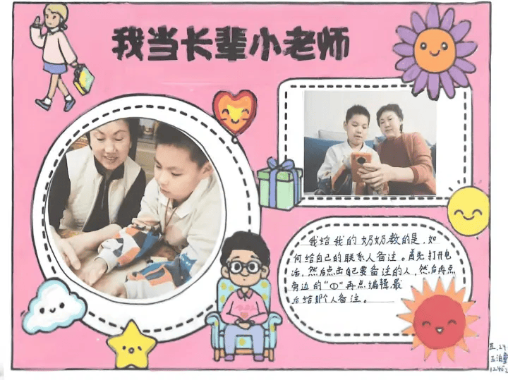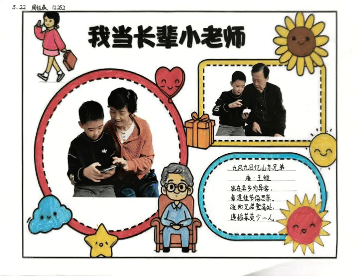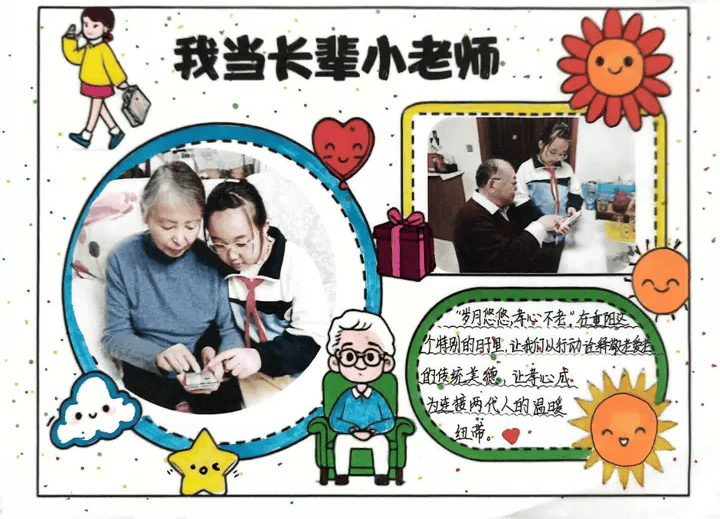 “我当长辈小老师”活动中,学生主动承担起“数字桥梁”的角色:教爷爷奶奶调大手机字体,演示微信语音的发送方法,讲解健康码的使用步骤……这些教学,不仅让长辈们更顺畅地融入数字生活,更让学生在“反哺”中读懂长辈的学习渴望,体会到“被需要”的幸福。