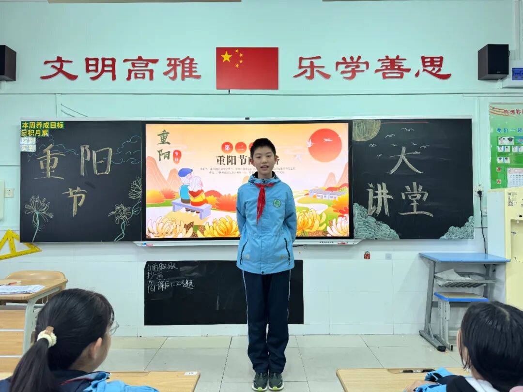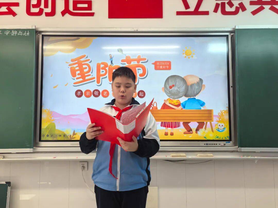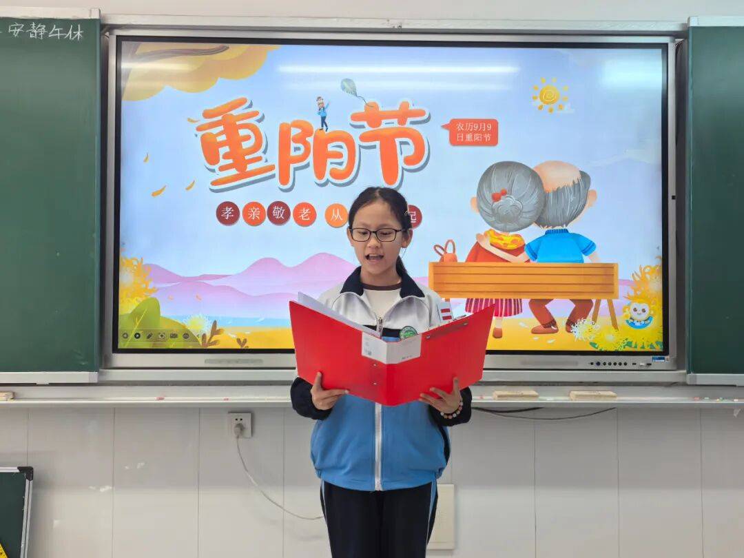 五年级学生代表以“爱在重阳”为题,用生动的语言诠释了“孝”的时代内涵,呼吁全体同学将敬老之心化为实际行动,为家中长辈送上一句问候、分担一份家务,让传统美德在日常点滴中传承。