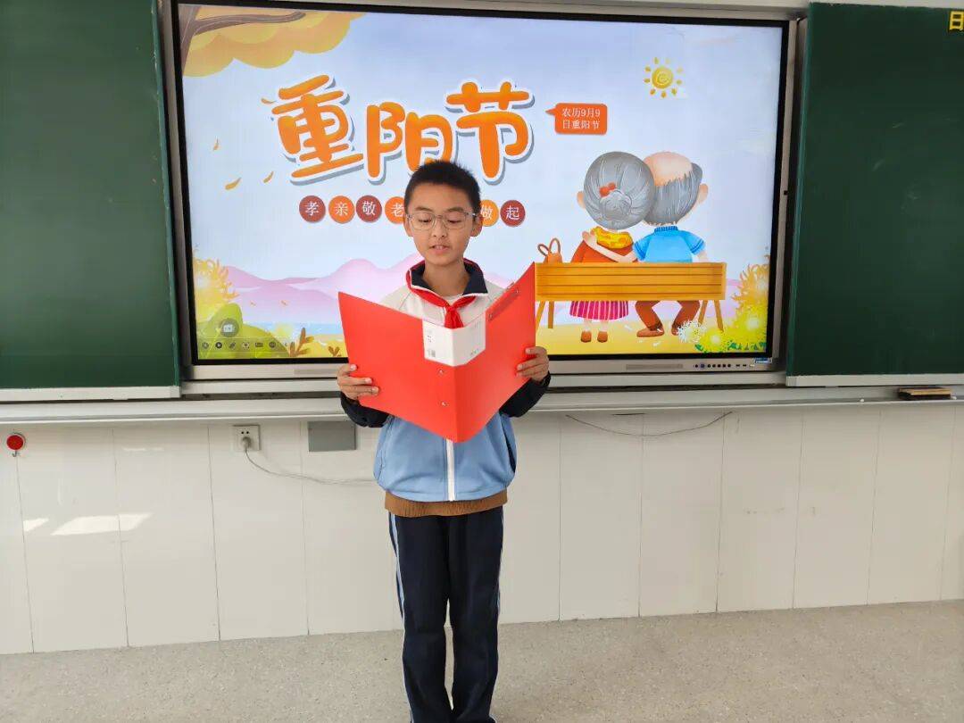“重阳节为什么要登高、插茱萸?它在现代又有怎样的意义?”在“重阳文化小讲堂”活动中,学生以小组为单位,化身“文化小讲师”,深入挖掘重阳节的文化内涵、历史传说与现代价值,在班级里声情并茂地分享。讲台之上,知识流转;讲台之下,文化认同悄然生长,让传统节日的精神内核在少年心中愈发清晰。