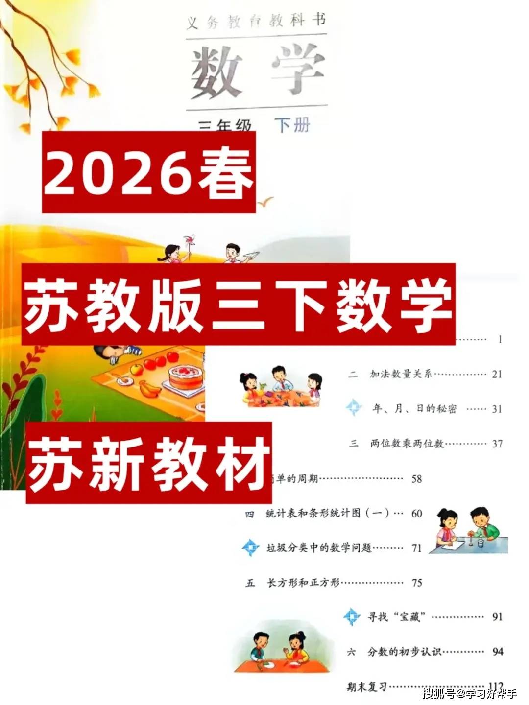 2026 春苏教版三下数学新教材重磅来袭!涵盖角、加法数量关系、年日月、两位数乘两位数、统计表和条形统计图、长方形和正方形、分数初步认识等核心单元,从基础概念到综合应用全面覆盖,三年级数学学习有这套就够了!三年级正是数学思维从具象向抽象过渡的 “关键发展期”,而这套新教材精准契合这一特点,将知识点与生活场景深度融合,用直观、有趣的形式帮学生轻松理解数学,既夯实基础又培养思维,数学成绩提升自然水到渠成!
