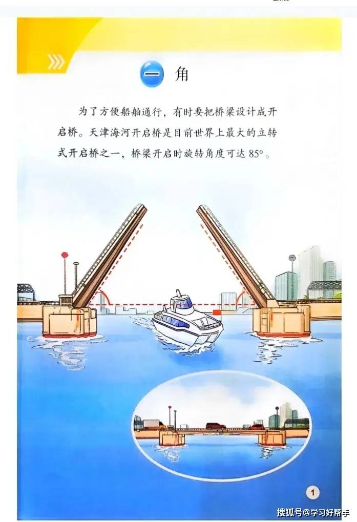 在知识点呈现上,教材 “生活化融入” 超直观,理解无压力:打破传统教材的抽象说教,把每个单元的知识点都放进学生熟悉的生活场景里 —— 学 “角” 时,以 “天津海河开启桥旋转角度” 为切入点,通过桥梁旋转时形成的不同角度,让学生直观感受 “锐角、直角、钝角” 的区别,比单纯看图形更易理解;认识 “线段、射线和直线” 时,借助 “长方体积木的棱”“手电筒射出的光线” 等生活事物类比,把抽象的线的概念与具象物体关联,一眼就能分清三者 “有端点数量、能否延伸” 的差异;就连 “年日月” 的学习,也结合 “生日日期记录”“假期时间规划” 等场景,让数学不再是枯燥的数字,而是看得见、用得上的知识,彻底解决 “抽象概念难理解” 的问题。