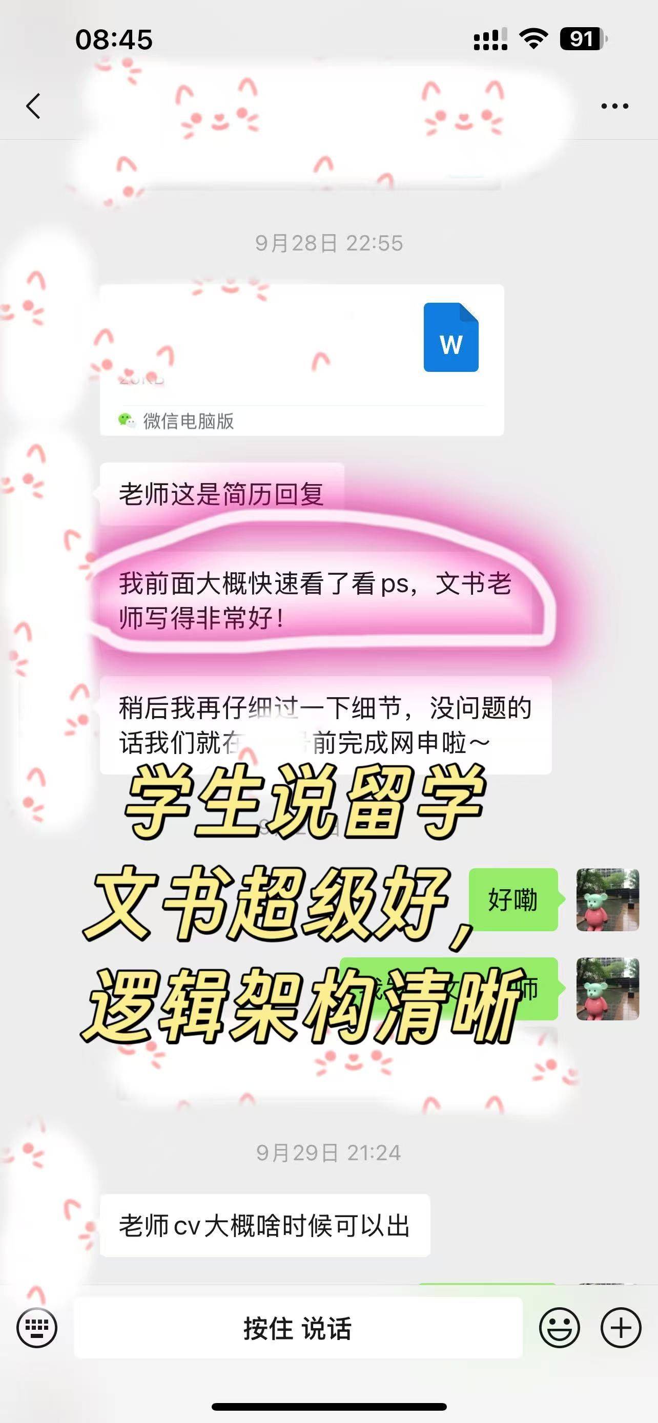 提交后短短1个月就拿到了录取通知书offer。学生均分84,本科经济学,实习,科研经历丰富。北京美弗留学高端留学给学生写的文书也是非常好,学生说文书架构非常清晰,文书非常流畅严谨,网申,都是我和学生用腾讯会议桌面共享的方式核对过才提交了,核对网申花了两个多小时,确保网申里所有的材料学生是完全满意的,最后才提交的。所有的努力都得到了回报,终于迎来了面试邀请,学生面试表现也非常好,最后拿到了offer啦