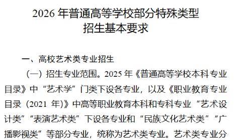 这一文件中通常包括艺术类专业招生、高水平运动队招生、保送生招生等特殊类型招生要求。