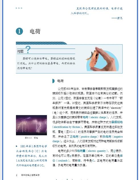 2025年学生将迎来新版教材,新教材将更加重视思维和阅读!为了方便广大学生在暑假预习新学期的课本知识,我们整理了2025新人教版高中物理必修(第三册)一电子课本,以图片的形式呈现给大家,希望对同学们的暑期学习有所帮助。