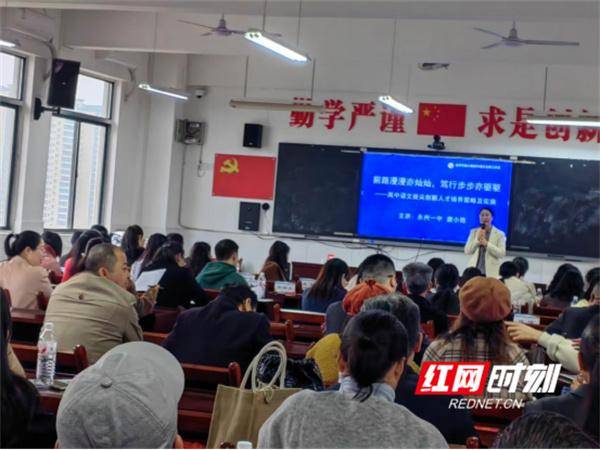 红网时刻新闻11月5日讯(通讯员 袁爱铭 黄子琴)研修花开金秋季,同心掬得满坛香。11月3日,2025年常宁市“三新”背景下高中骨干教师教育教学能力提升研修活动在常宁市二中拉开序幕。11月4日,永州市唐小艳高中语文名师工作室首席名师带领核心成员,受邀为参培学员带来精彩讲座,擘画出高中语文拔尖创新人才培养的瑰丽图景。
