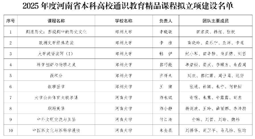2.2025年度河南省本科高校通识教育精品课程拟立项建设名单