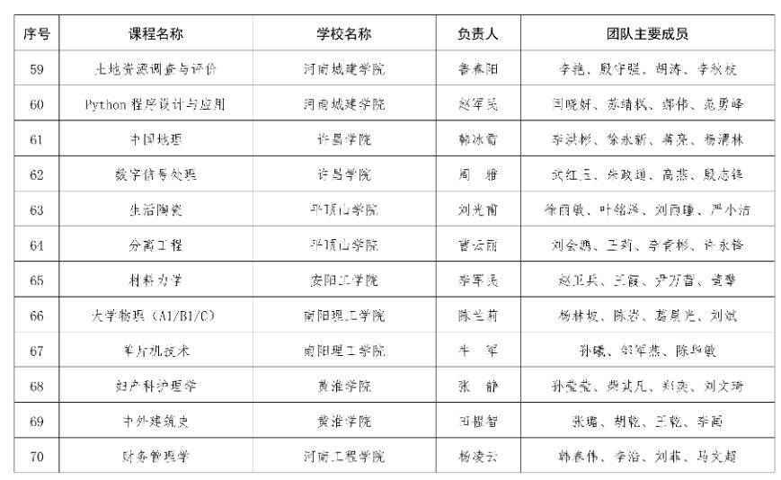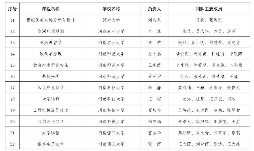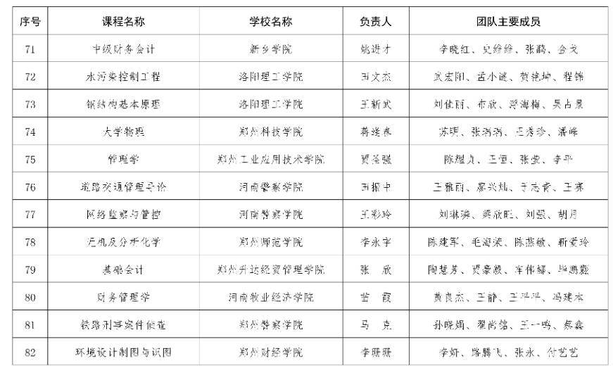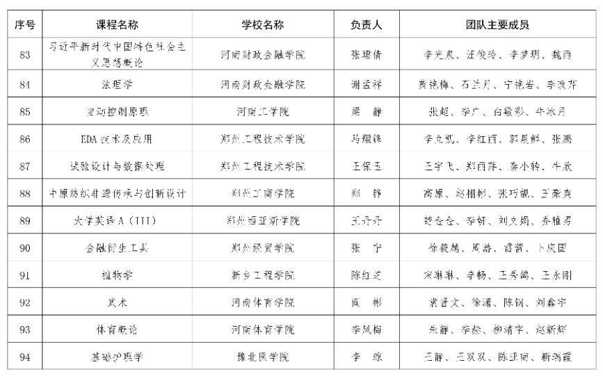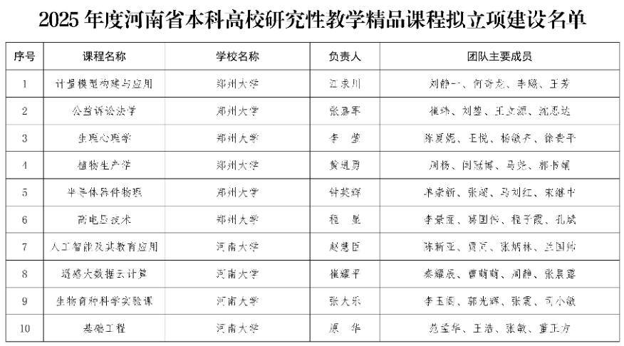 河南省教育厅关于2025年度河南省本科高校精品课程拟立项建设名单的公示