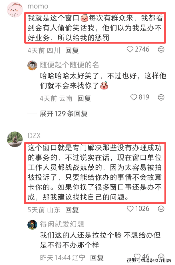 这到底是办得成、还是办不成啊?评论区有一位四川ip的体制内工作者忍不住吐槽:自己就是负责这个窗口的工作人员,经常看到有人偷偷笑话我,因为他们以为我是办不好业务,所以给我的惩罚。
