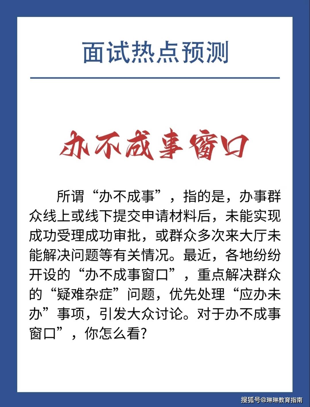 至于为什么考公的同学都知道这个窗口的真正含义,是因为这个“办不成事”窗口曾经出现过在考试题目中,这个也曾是考公面试的热点预测。