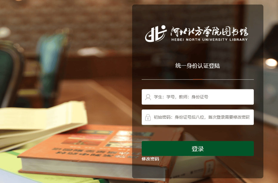 二、登录账号是学号,初始密码身份证后8位(与登录“我的图书馆”的账号密码一致,密码不正确可去图书馆二楼前台修改)
