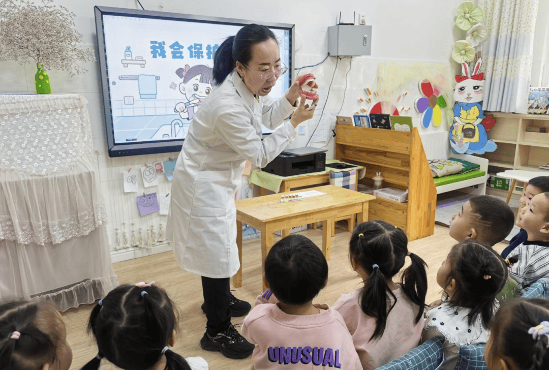 小班段围绕“身边小事·趣味认知”主题,在爸爸妈妈温暖的声音中,开启了认知与情感的启蒙。家长们借助假牙道具、精美的绘本PPT,用夸张有趣的语气和动作,将《我会保护牙齿》的健康习惯、《小英雄王二小》的机智勇敢、《妈妈抱抱我》的情感表达娓娓道来。孩子们听得目不转睛,在轻松愉悦的氛围里,不仅激发了语言兴趣,更在故事中学会了认识身边的世界,感受爱的陪伴。
