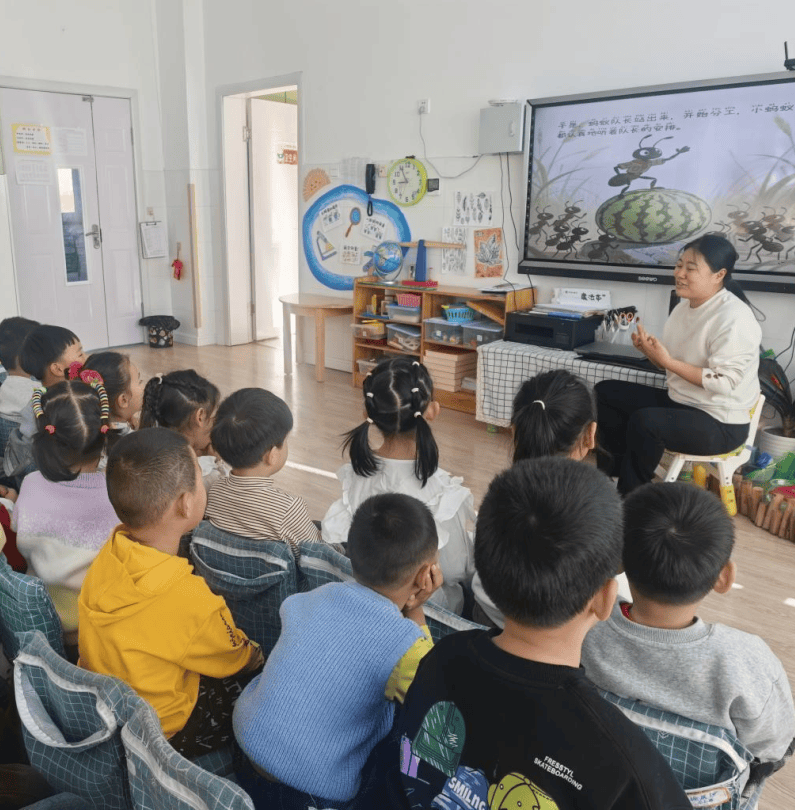 中班段聚焦“成长探索·习惯养成”,故事内容更具深度。家长们不再是简单的讲述者,更是活动的引导者。在《小蚂蚁搬西瓜》故事后,孩子们模仿角色,进行情景再现;在探讨《分享的快乐》时,大家踊跃表达自己的想法。通过角色扮演、互动问答等小游戏,勇敢、合作、守规则等美好品格的种子,悄然植入了孩子们的心田,实现了从“听故事”到“学道理”的能力跨越。
