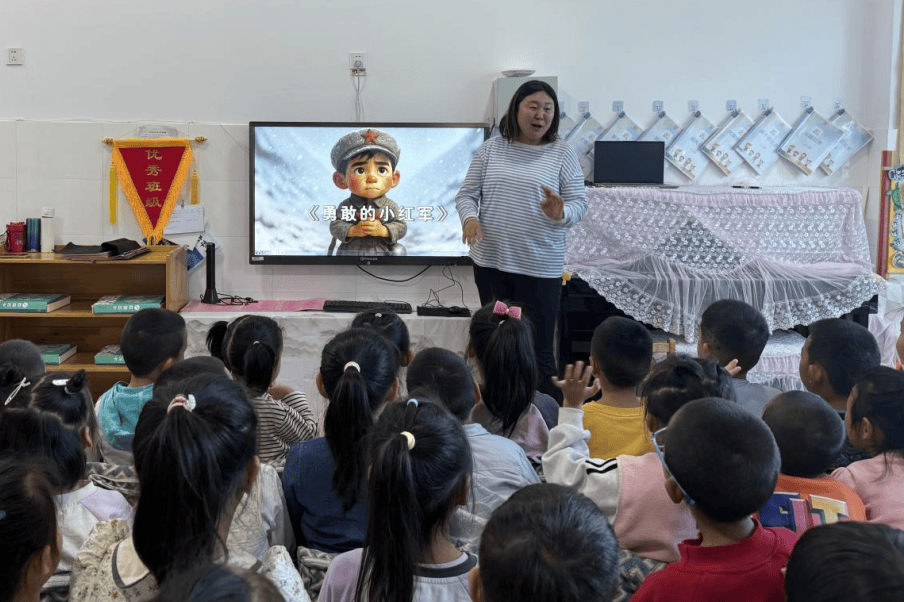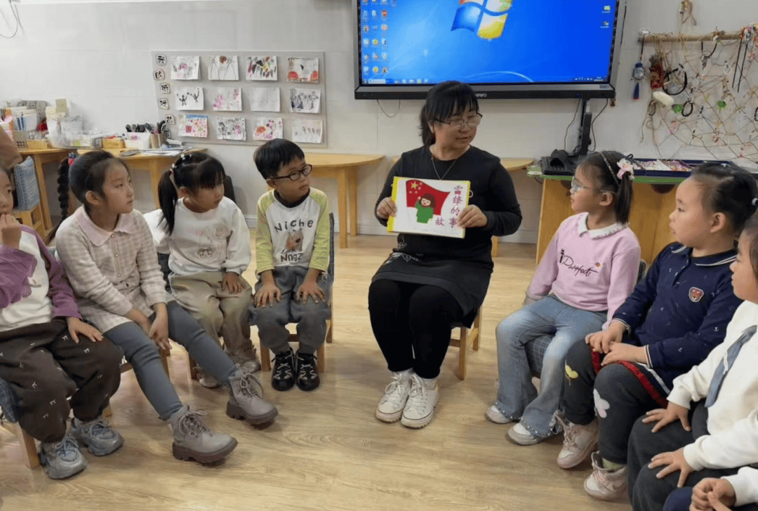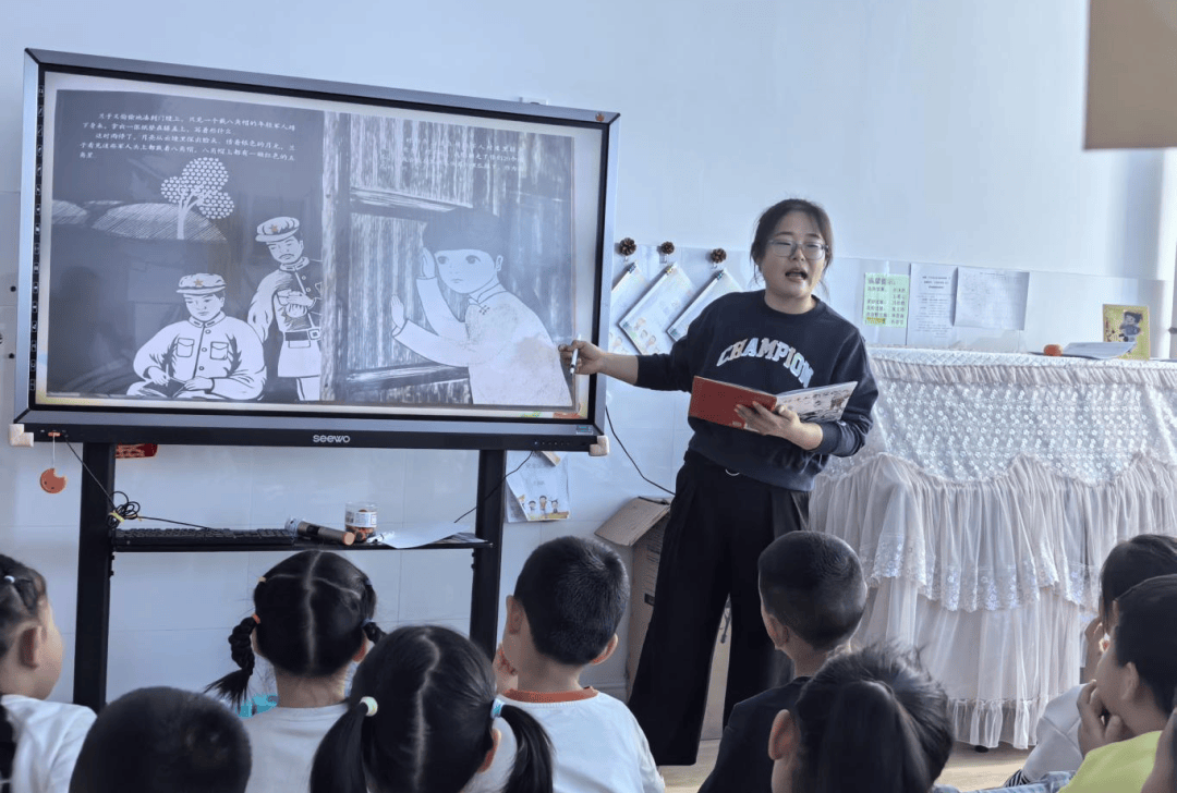 大班段作为本次活动的红色教育主场,紧紧围绕“多元视野·红色铺垫”主题,开展了别开生面的红色故事专场。家长们深情讲述了《勇敢的小红军》、《帽子上带星星的人》《我爱你中国》等经典故事,用孩子们能够理解的语言,将不畏艰难的革命精神和对祖国炽热的爱娓娓道来。孩子们在聆听中初步理解了“勇敢”与“奉献”的含义,爱国主义的种子在他们心中悄然萌芽。大五班的孩子们在《帽子上带星星的人》的故事氛围中眼神专注,一颗颗爱党爱国的“红色种子” 在此刻深深埋下,为孩子们扣好了人生第一颗“红色的扣子”。