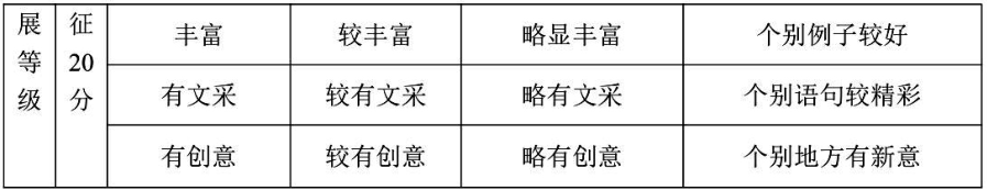 ②字数达到 600 以上而不足 800 字的,按正常卷评分,每少 50 字扣 1 分,扣完 4 分为止。字数在 200—600 之间的,内容项和表达项原则上不得超过三等上,发展项不给分。不足 600 字的,得分不超过 20 分。不足 400 字的,得分不超过 10 分。不足 200 字的,得分不超过 5 分。