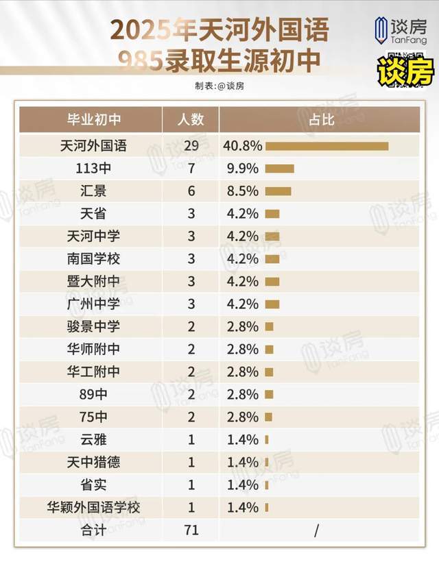 再往下看,广州中学16人、113中14人、天省13人、75中13人、天河中学11人、汇景10人……这些都是优质生源的大户。