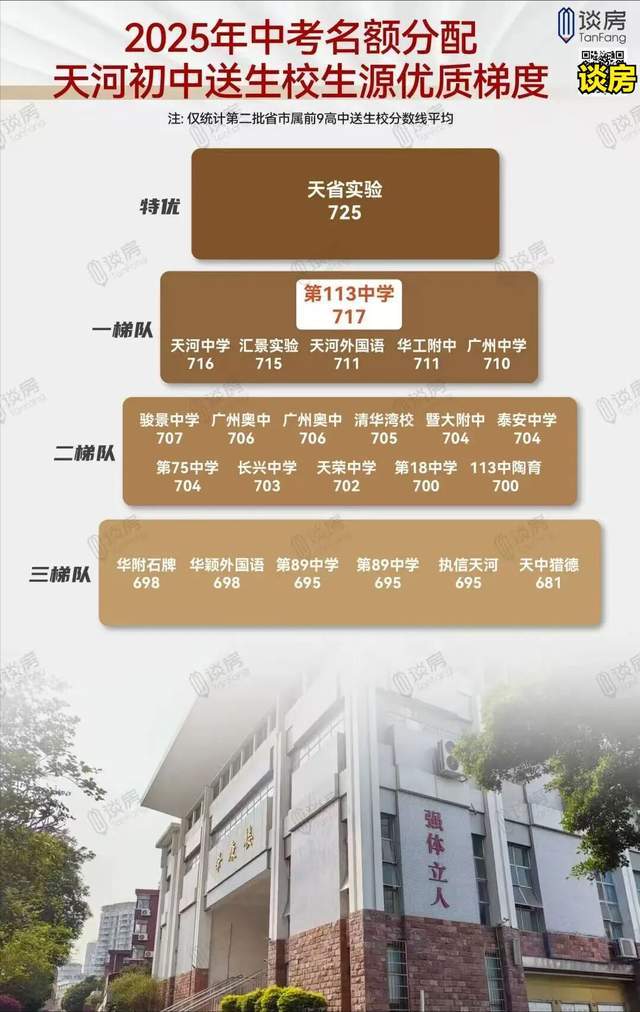另外,在今年的中考名额分配当中,113中送生平均分717分,天河公办第一。