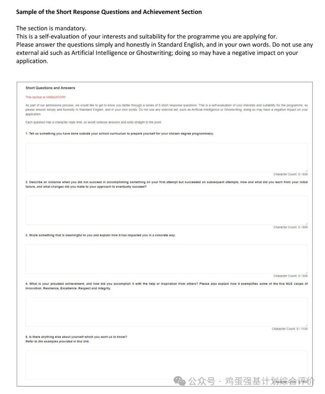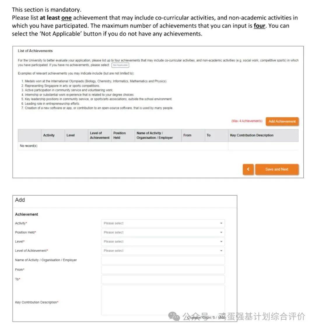 作为申请的一部分,您需要指出最多三项成就并回答五个简答题。请诚实地用自己的语言回答这些问题,因为它们将被视为您整体评估的一部分。
