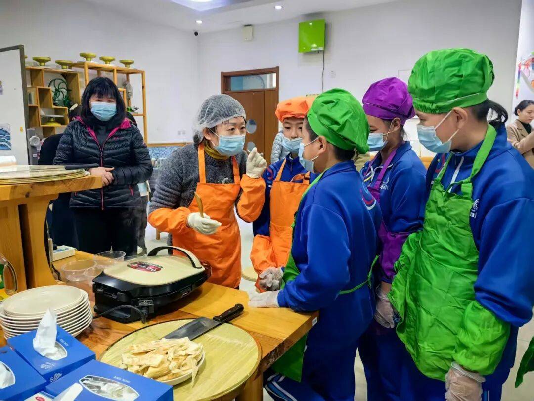 劳动课选择的教学内容为“烹饪与营养任务群--学烙饼”。烙饼,属于北方冬季常见主食,受到学生喜欢。在教师指导下,学生一学即会,学后及用,满满的幸福感充溢着教室。教师巧妙地将传统生活技能引入课堂,不仅让学生掌握了实用的劳动技能,更在劳动实践中体验了劳动的乐趣,充分体现了劳动教育的综合育人功能。此外,学校还充分整合家庭和社会劳动教育资源,为学生提供了更多的劳动实践机会;邀请家长、社区志愿者、专业技术人员等担任劳动课程兼职教师,丰富了学校教学资源。