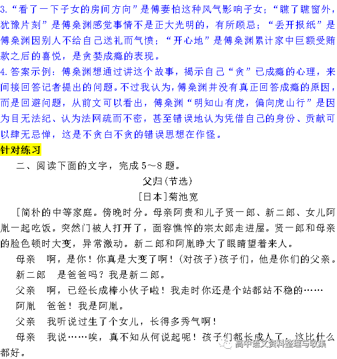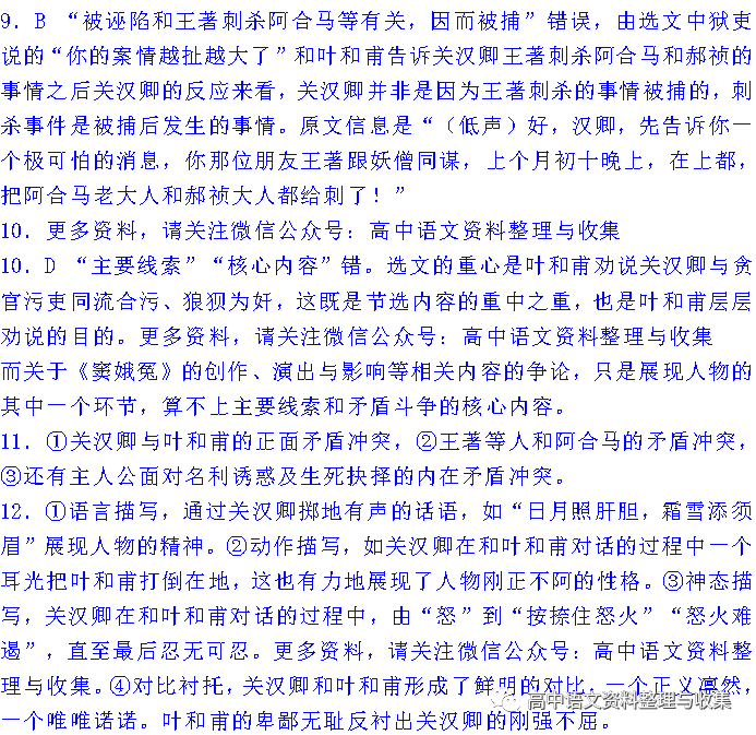 【解析】“侧面衬托”错误,应为正面描写。另外,“他对变法成败的担心”也不对,商鞅的话表现了他对祝欢说法的不认同,是暗讽。
